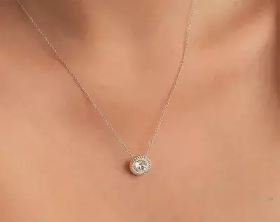 1.42 cttw Round Double Halo Pendant Necklace Brilliant Cut Diamond Simulant Bridesmaid Gift Necklace Dainty Necklace