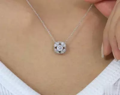 2.0 cttw Diamond by Yard Halo Necklace Two Tone Pendant w/ 8 piece (3.0mm) Stationary Charm Stones Bridal Necklace