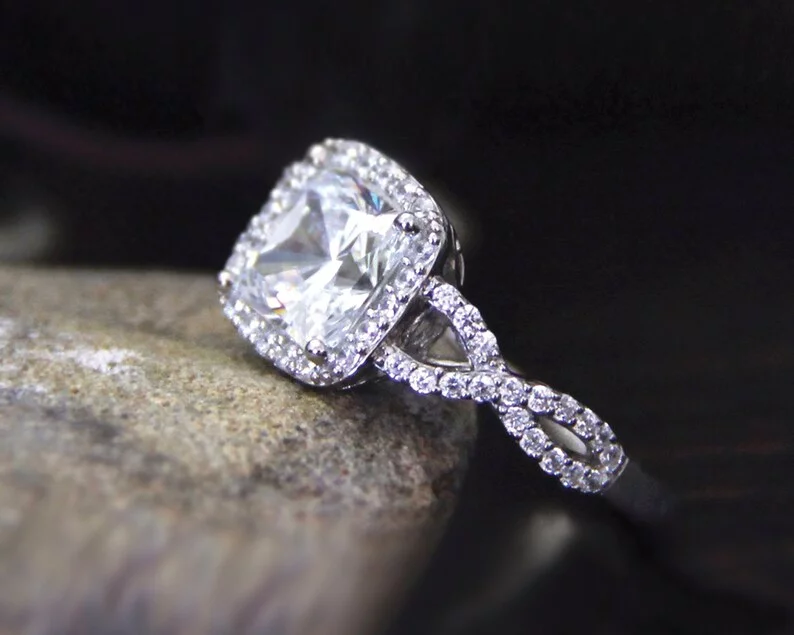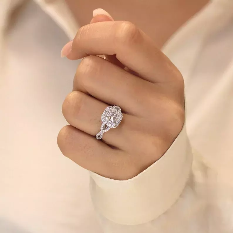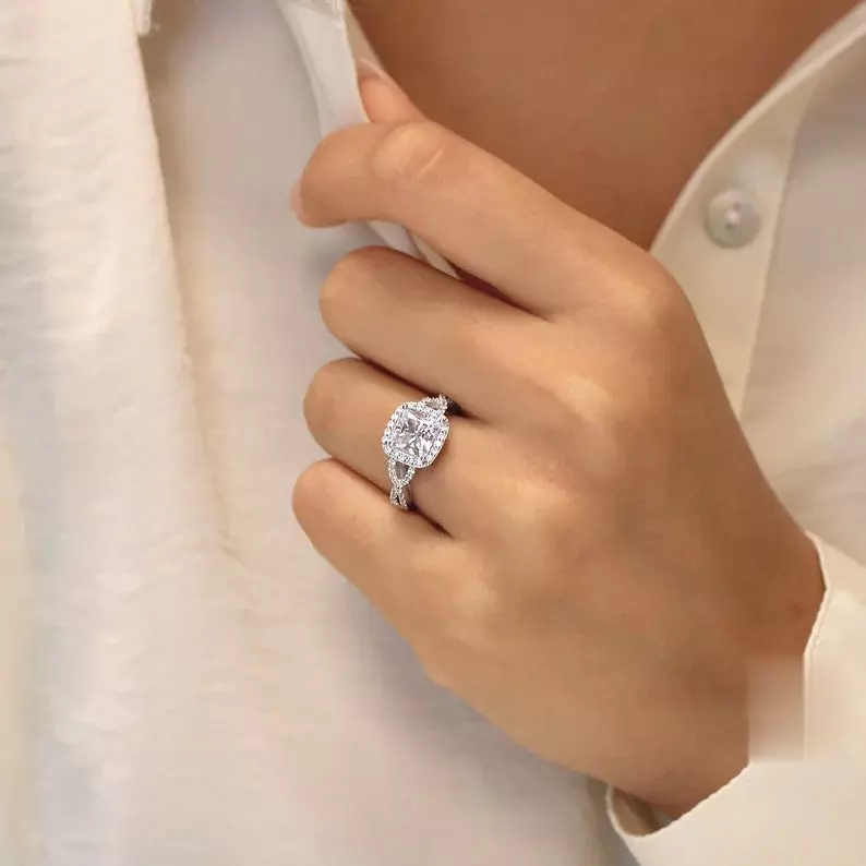 - Main stone: Cushion cut (7.0 mm)