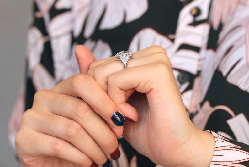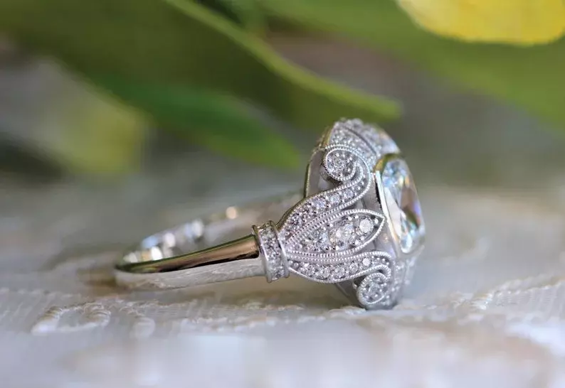 -Diamond cutting: Cushion cut (center) with brilliant cut pave set