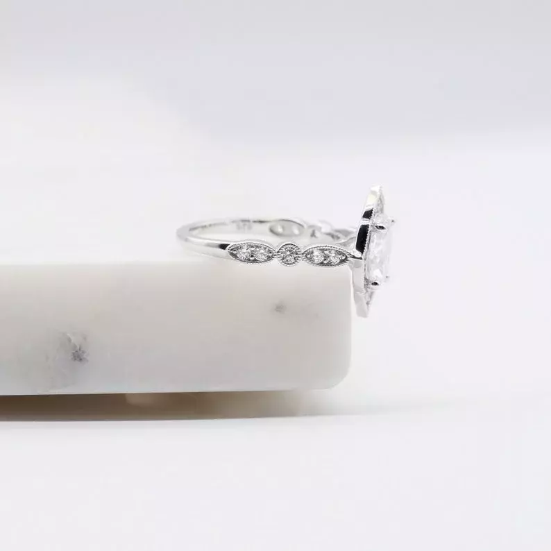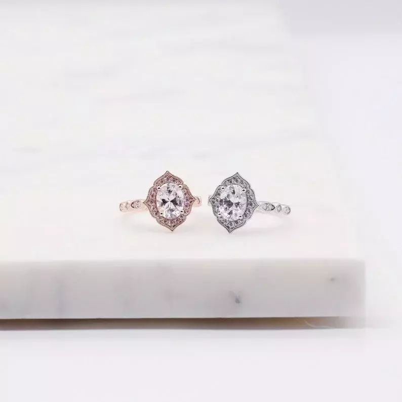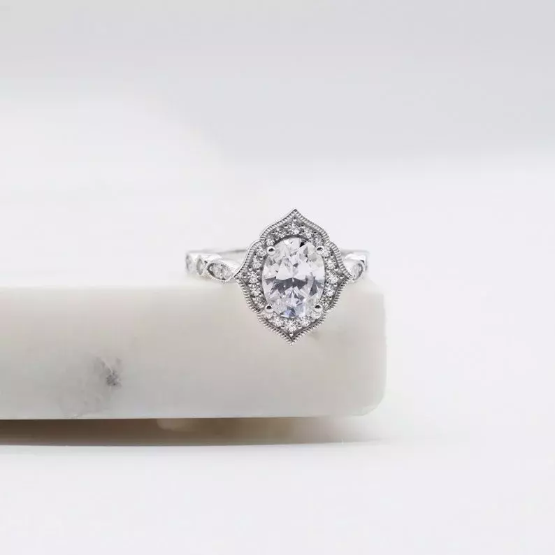 - Diamond cutting: Oval cut (9x7mm), Brilliant pave set (2.0mm to 1.3mm)