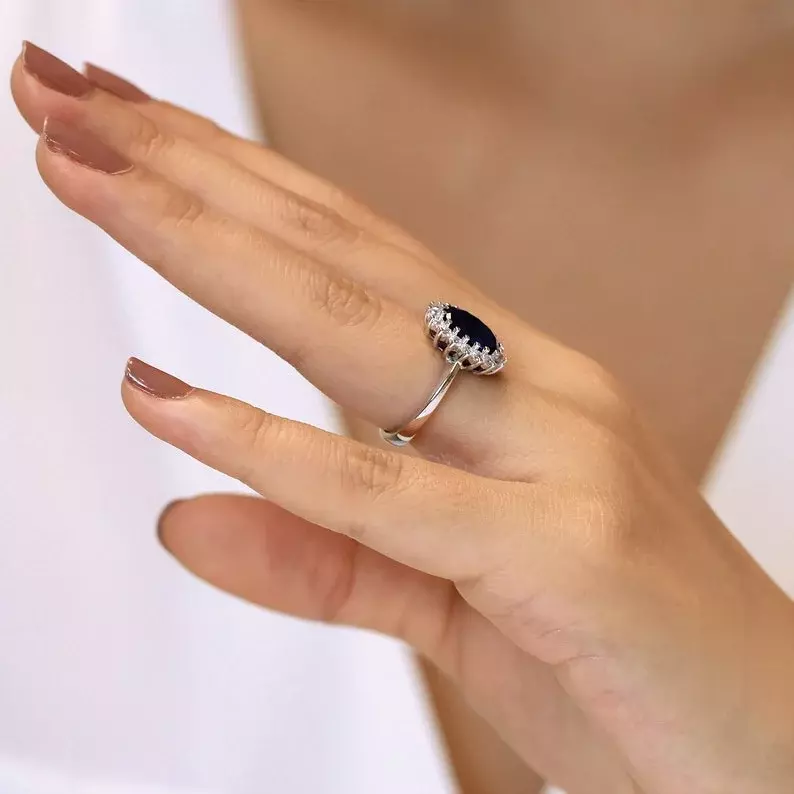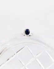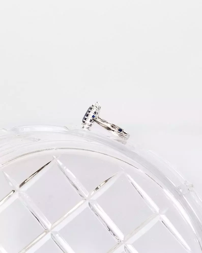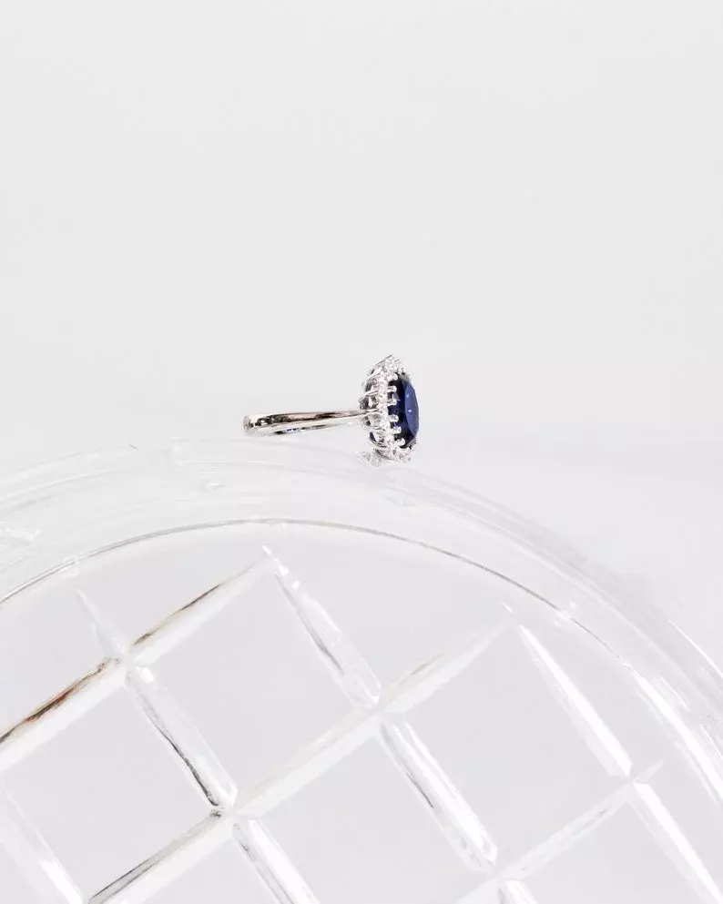 - Diamond cutting: Sapphire blue oval cut (center) & brilliant cut diamond (1.5mm)