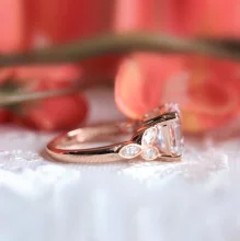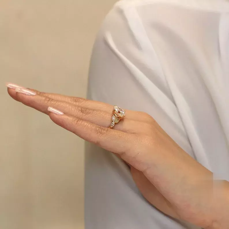 -Diamond cutting: Asscher cut (center), Marquise cut (side) & pave set cut