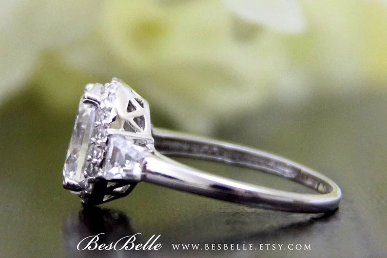 -Diamond cutting: Oval cut (center), tapered baguette cut (side) & pave set cut