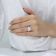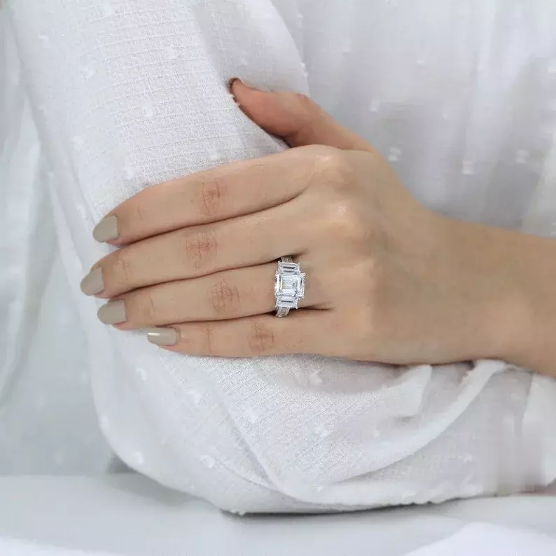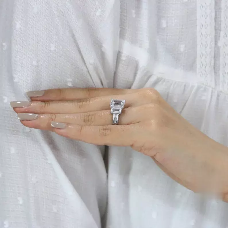-Diamond cutting: Emerald cut (center), baguette cut (side) & pave set cut