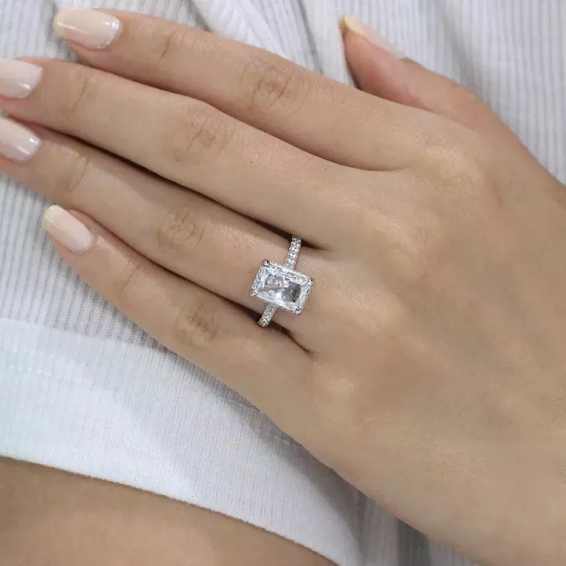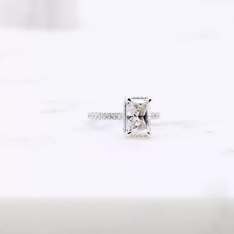 - Diamond cutting: Radiant cut (10x7mm), Brilliant pave set (1.4mm and 1.0mm)