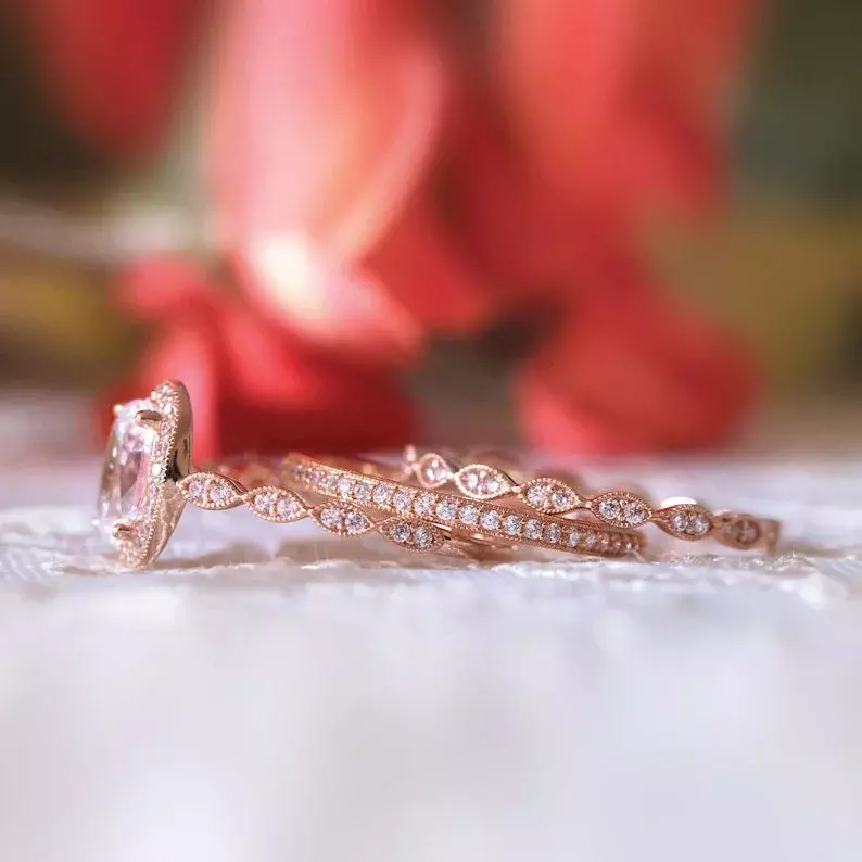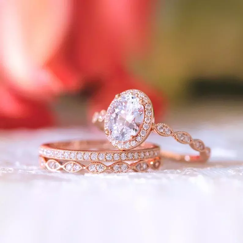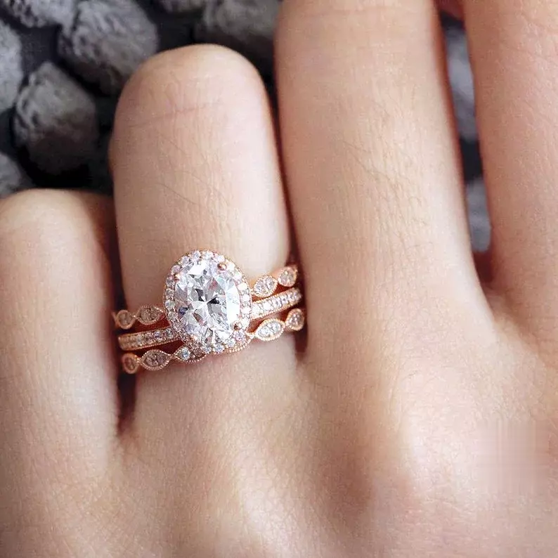 - Diamond cutting: Oval cut (center) & Brilliant cut pave set