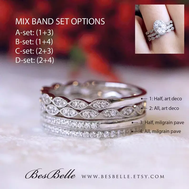 - Total stones weight: Approximately 2.47 cttw (A-set), 2.72 cttw (B-set), 2.62 cttw (C-set), 2.87 cttw (D-set)