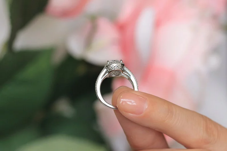 -Center stone weight: Approximately 1.75 ct [9x7mm]