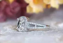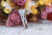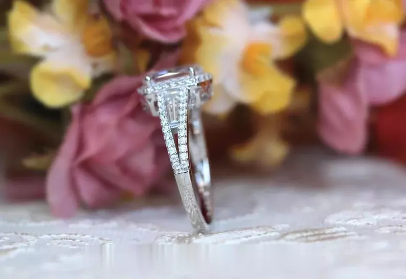 -Diamond cutting: Unique special fancy cut (center) and tapered baguette cut (6x2x1.5mm) w/ brilliant cut pave set