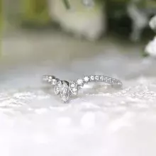 0.31 cttw Tiara & Crown Dainty Wedding Band Ring V Curved Wedding Ring Marquise Cut Center Diamond Simulant Stacking Ring