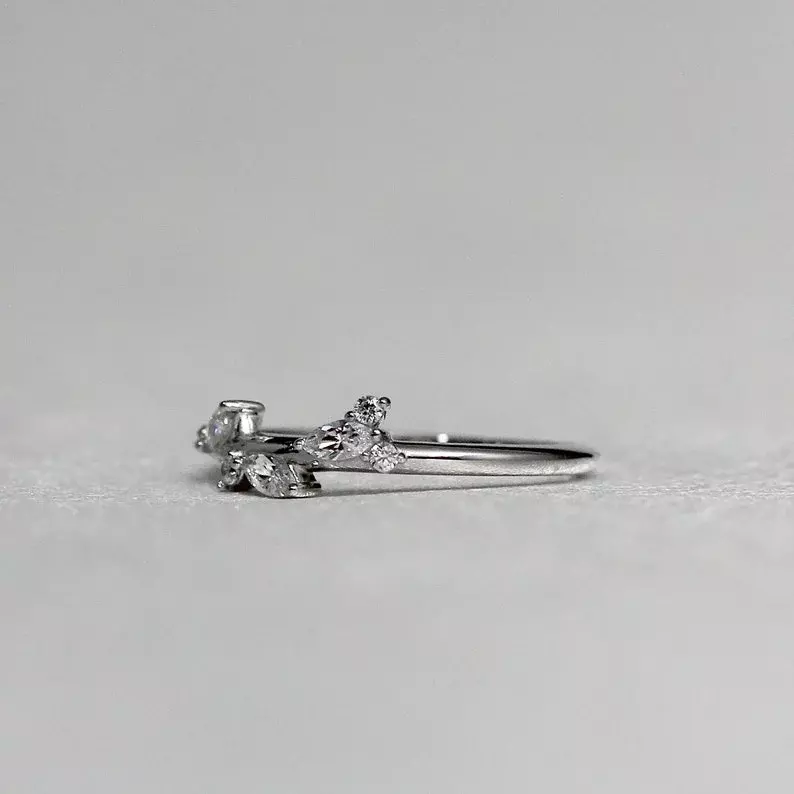 Nature Leafy Vine Ring Art Deco Wedding Ring Marquise and Dot Band Ring Nature Inspired Ring Vine Band Ring