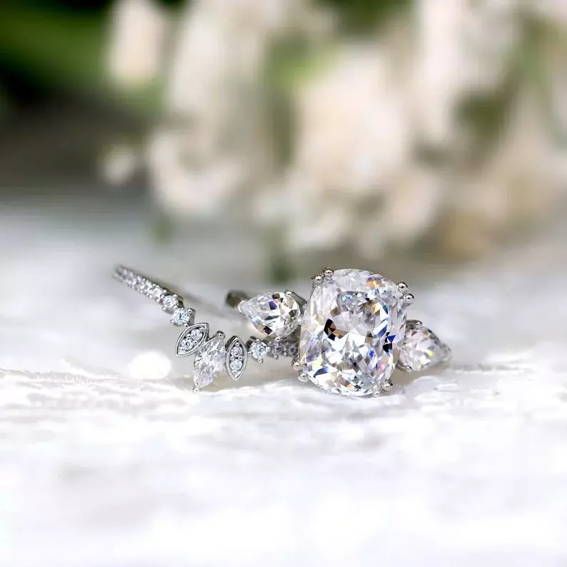 - Diamond cutting: Antique cushion cut & Pear cut, Pave brilliant set
