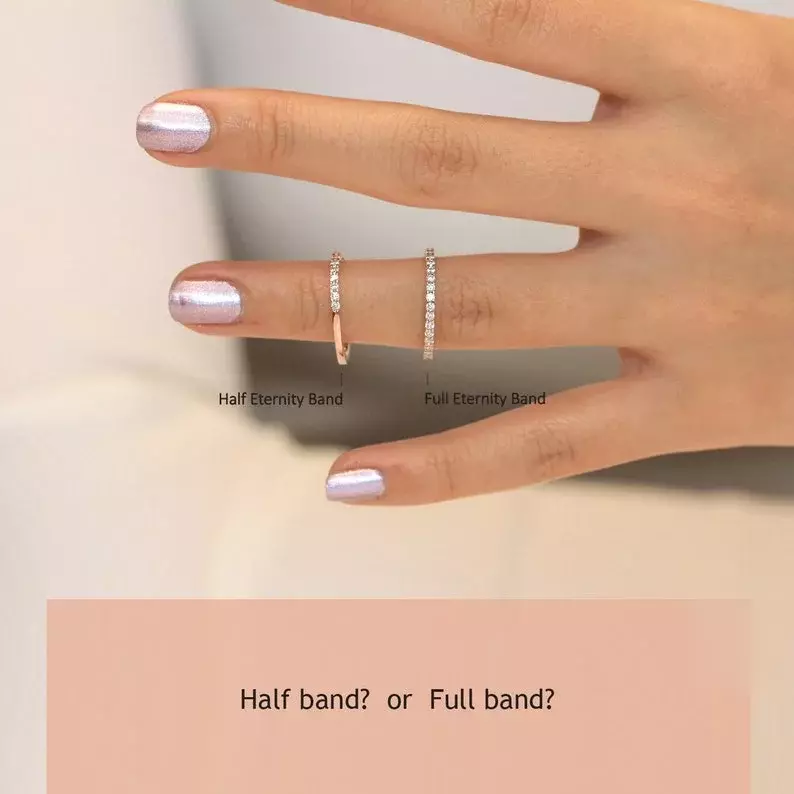 - Total stone weight: Approximately 2.62 cttw (w/ full eternity band) and 2.26 cttw (w/ half eternity band)