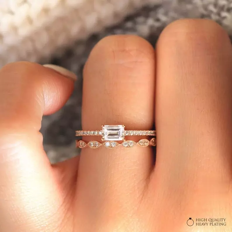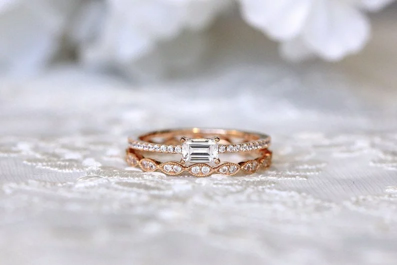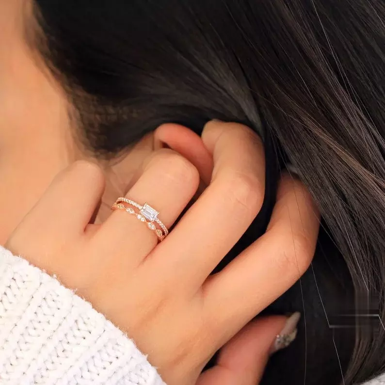 -Diamond cutting: Emerald cut (5x3.5 mm), Brilliant pave set (1.4 mm and 1.0 mm)