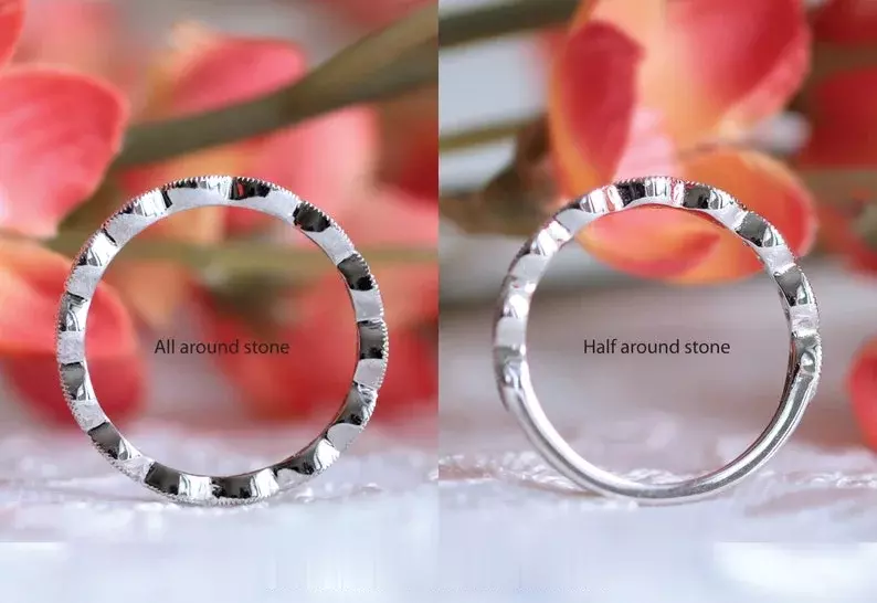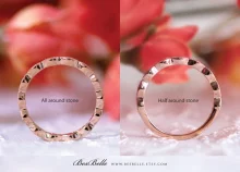 -Total stones weight: Approximately 0.92 cttw (w/ all eternity band) and 0.77 cttw (w/ half eternity band)