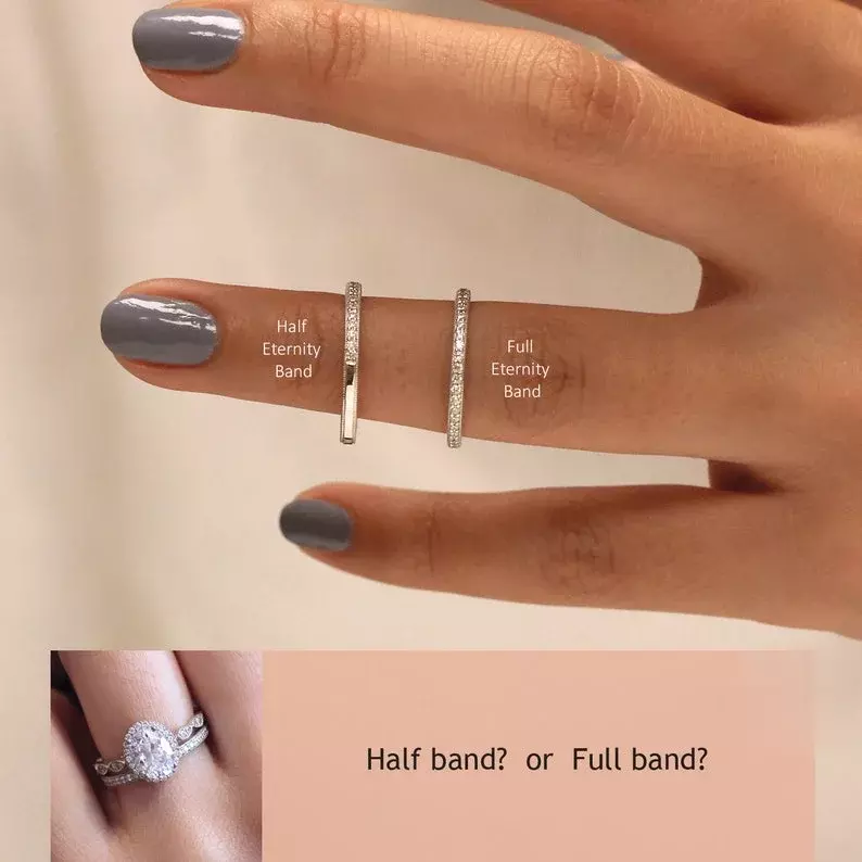 -Total stones weight: Approximately 2.45 cttw (w/ all around band) and 2.20 cttw (w/ half around band)