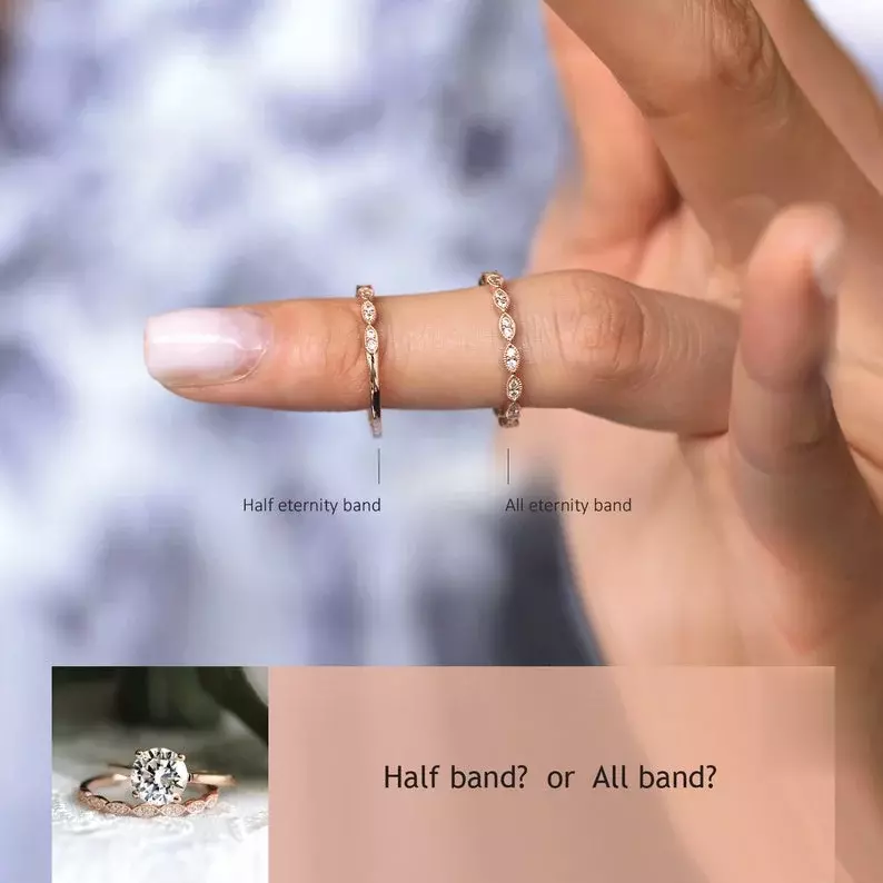 - Total stones weight: Approximately 2.32 cttw (w/ all eternity band), 2.17 cttw (w/ half eternity band)