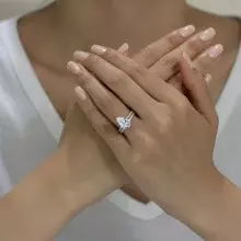 - Diamond cutting: Pear cut (Center) & Brilliant pave set (1.4mm)