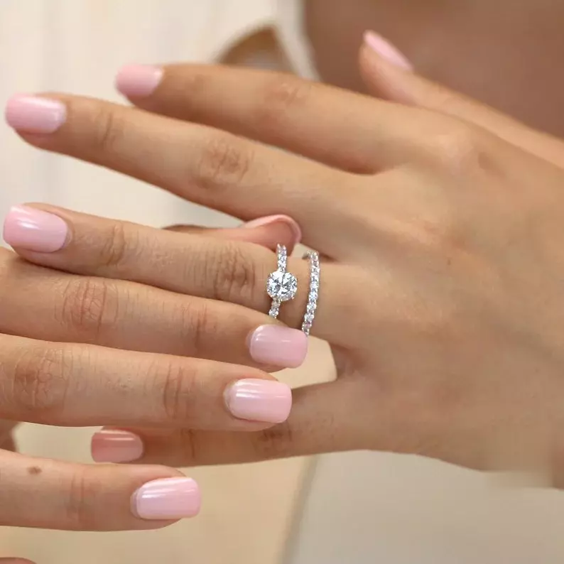- Total stones weight: Approximately 2.20 cttw (w/ all eternity band), 1.66 cttw (w/ half eternity band)