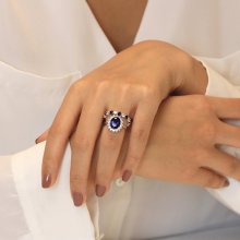 Three-layer electroplating is smooth and delicate, comfortable to wear and does not scratch the skin. Manual inlay is not easy to fall off. It is bright, smooth and transparent, Individual character universal temperament, and the surface impression is very clear and shiny, sapphire female ring diamond ring sapphire halo.