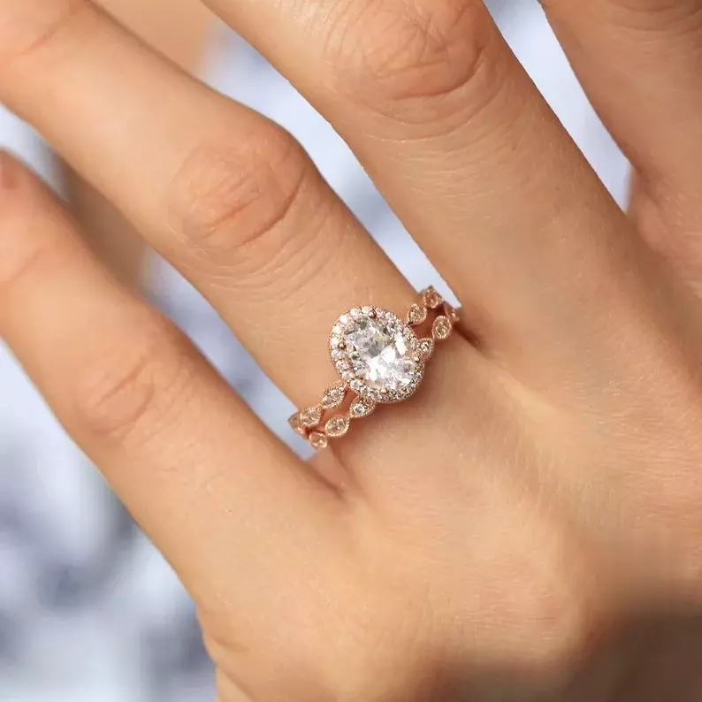-Diamond cutting: Oval cut (center) & brilliant cut pave set