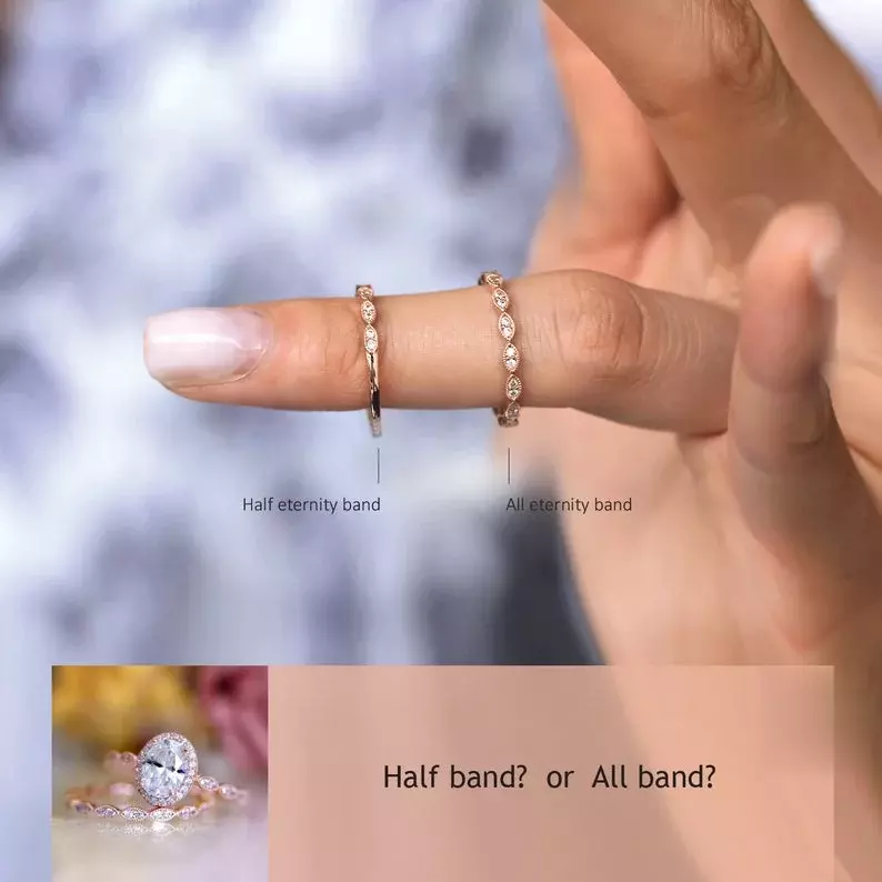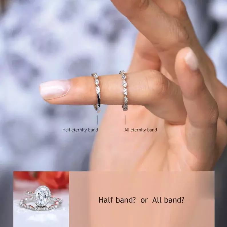 -Total stones weight: Approximately 2.37 cttw (w/ all eternity band), 2.22 cttw (w/ half eternity band)