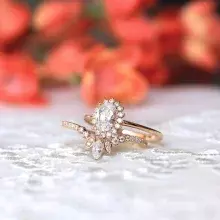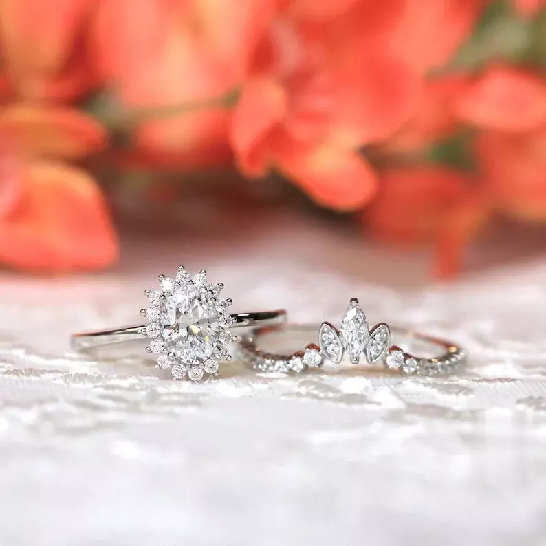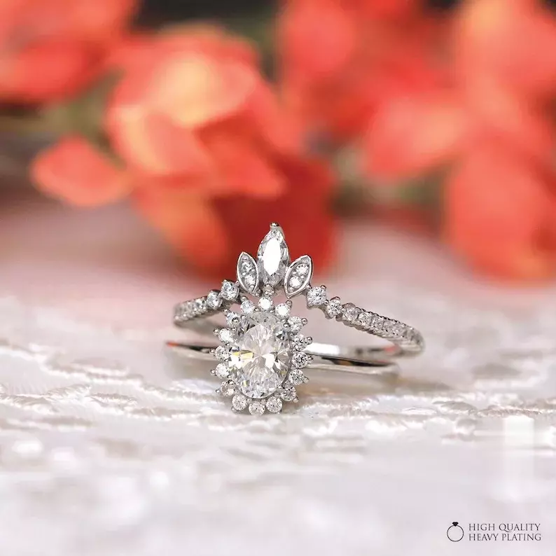 -Diamond cutting: Oval cut (main) and Marquise cut, Pave brilliant set