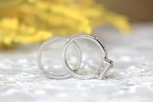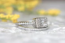 -Diamond cutting: Emerald cut (6x4mm) & Brilliant pave set (1.0mm and 1.1mm)
