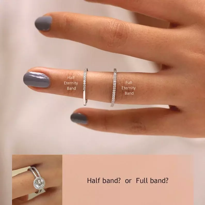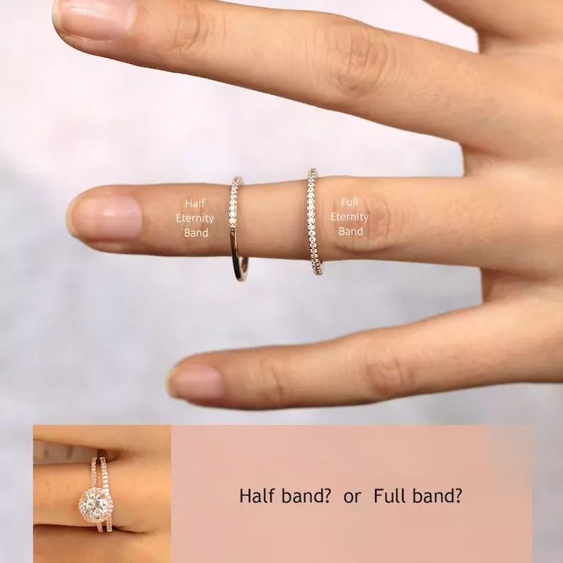 - Total stones weight: Approximately 2.13 cttw (w/ all around band) and 1.81 cttw (w/ half around band)