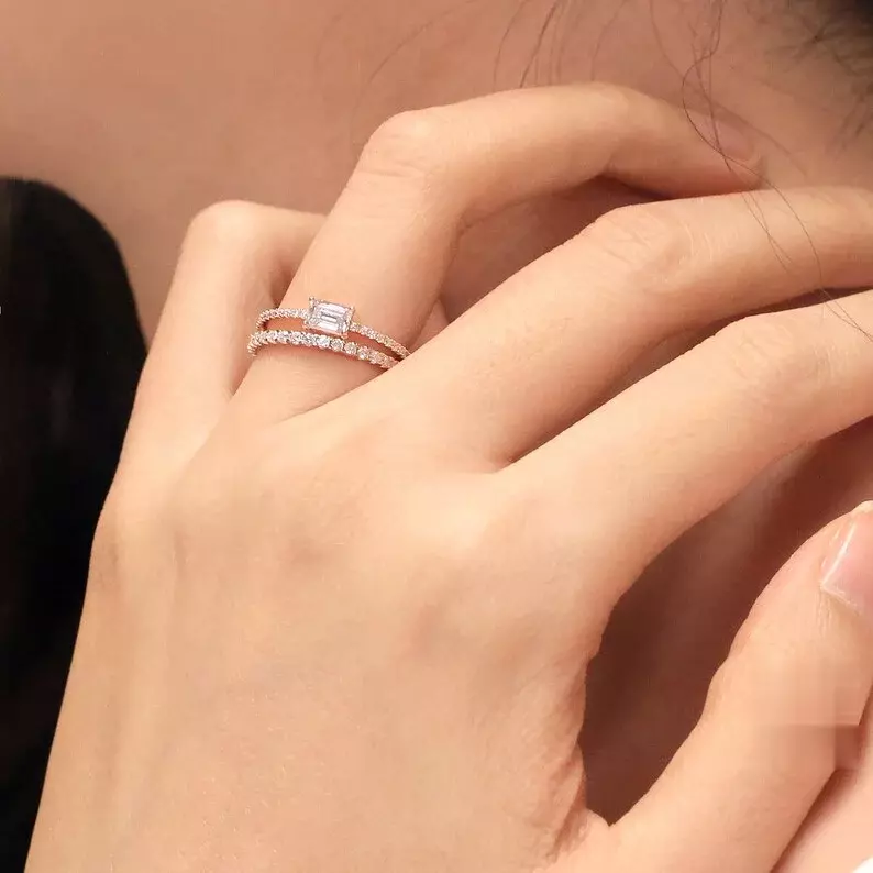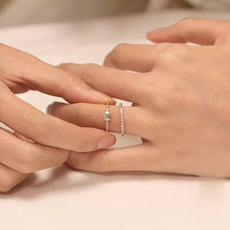 - Diamond cutting: Emerald cut (5x3.5mm) and Brilliant cut (2.0 and 1.5mm) pave set (1.2mm)