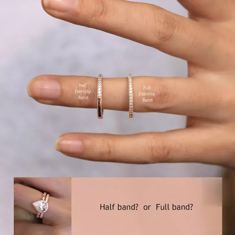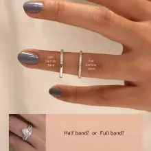 -Total stones weight: Approximately 3.20 cttw (w/ all around band) and 2.95 cttw (w/ half around band)