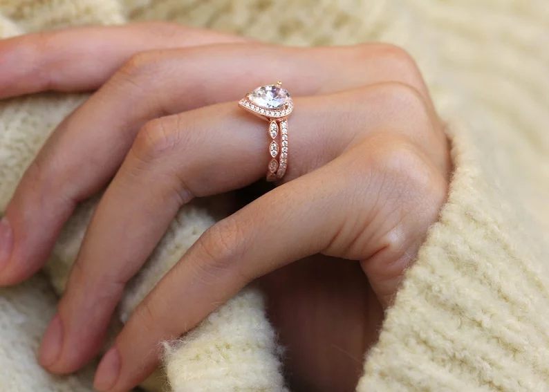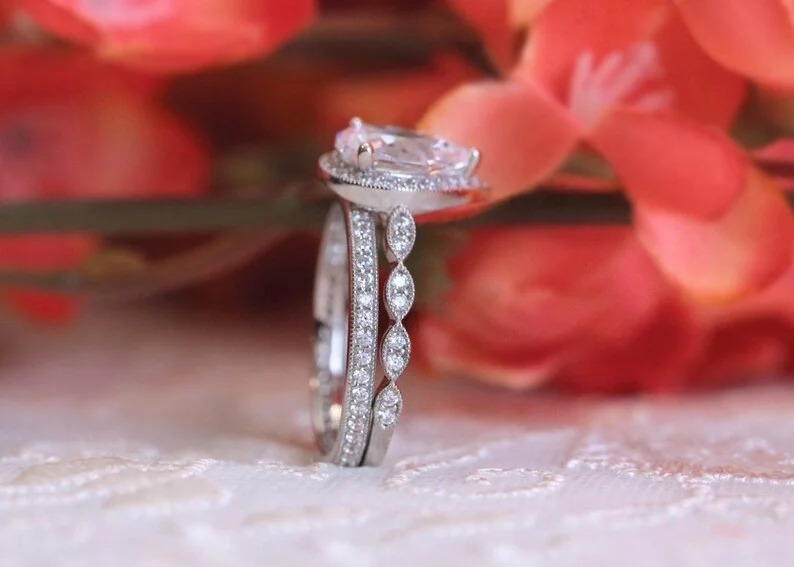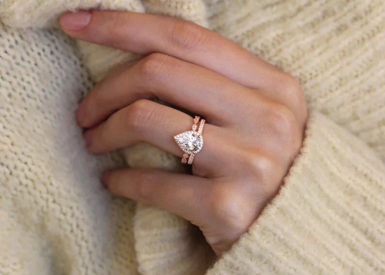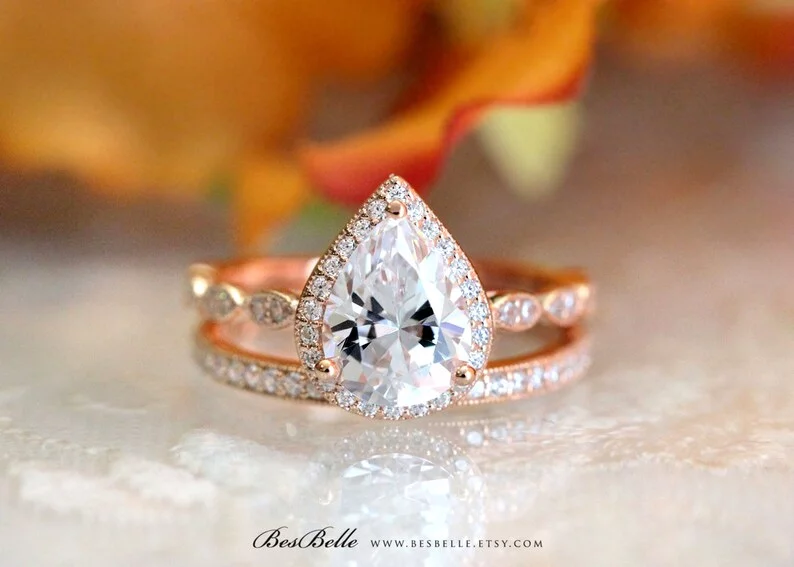 -Diamond cutting: Pear cut (center) & brilliant pave set