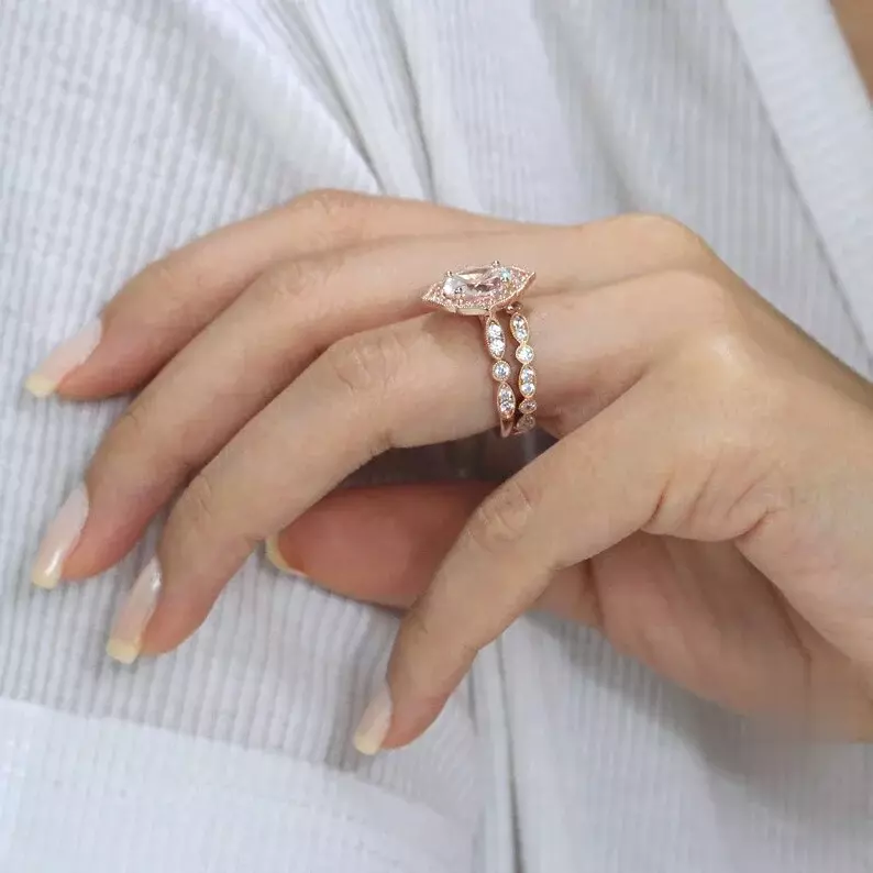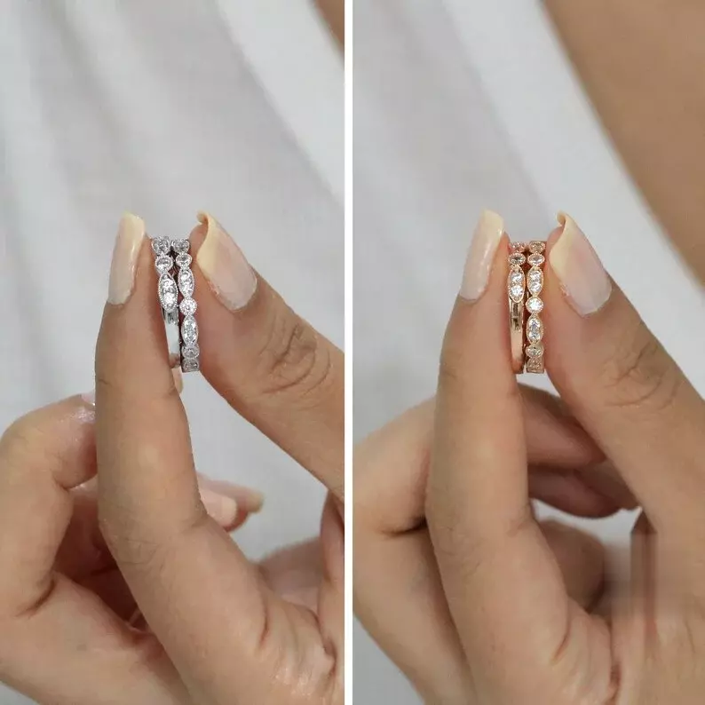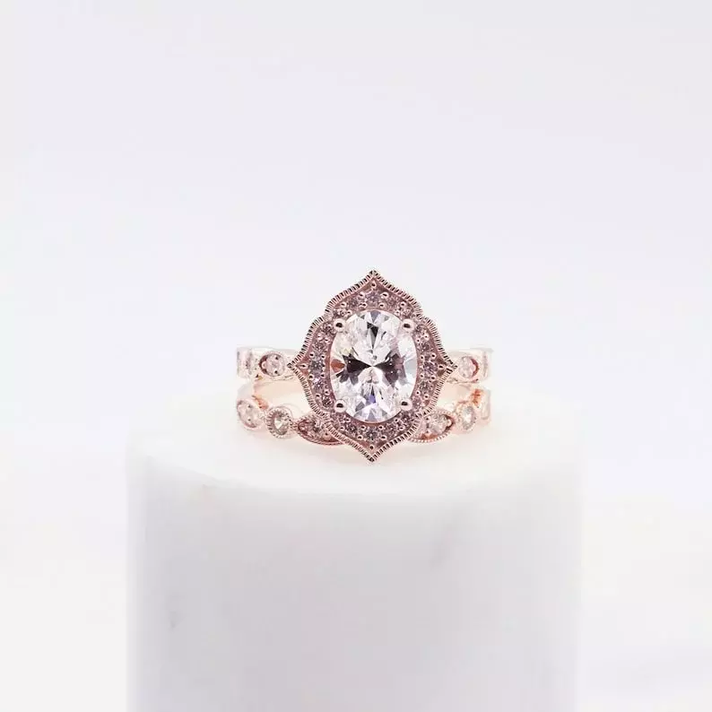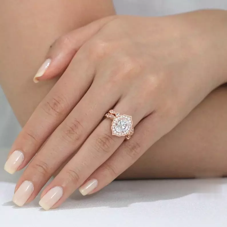 - Diamond cutting: Oval cut (9x7mm), Brilliant pave set (2.0mm to 1.3mm)