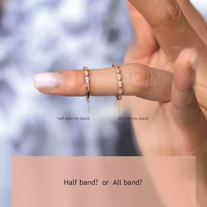 - Total stones weight: Approximately 1.42 cttw (w/ all eternity band), 1.27 cttw (w/ half eternity band)