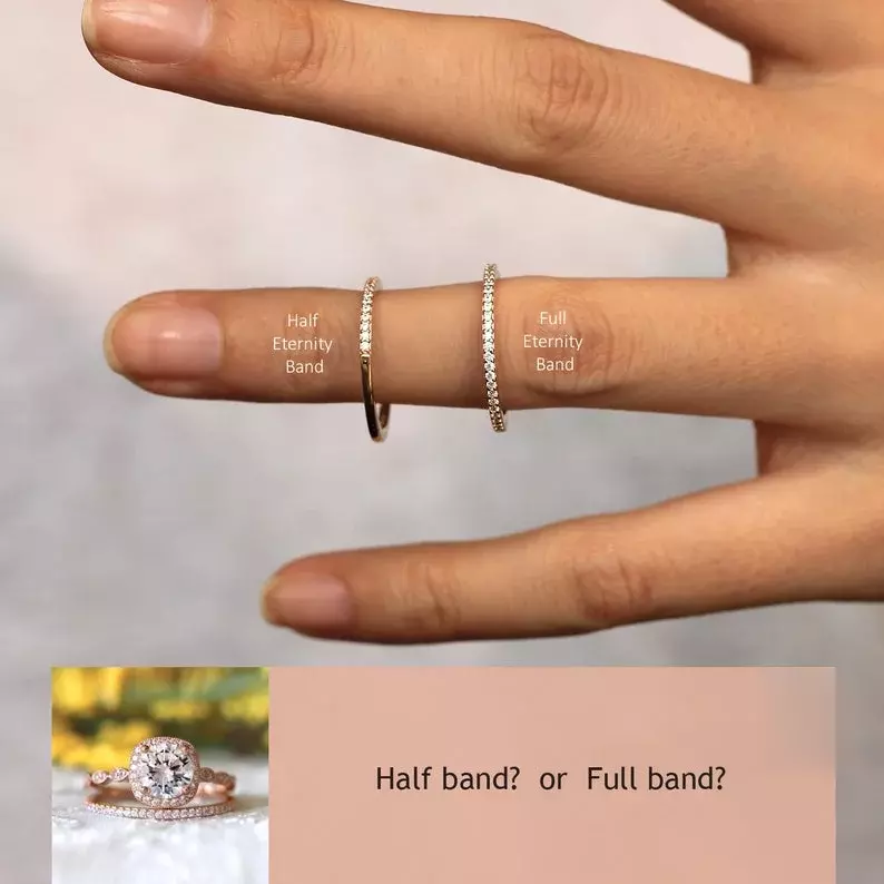 -Total stones weight: Approximately 2.50 cttw (w/ all eternity band) and 2.22 cttw (w/ half eternity band).