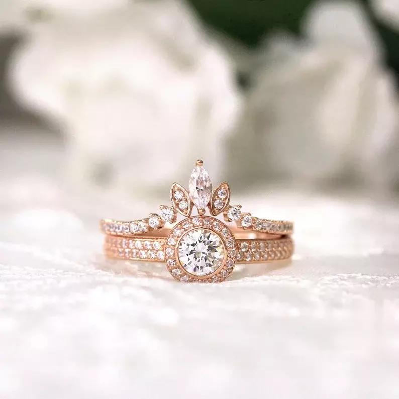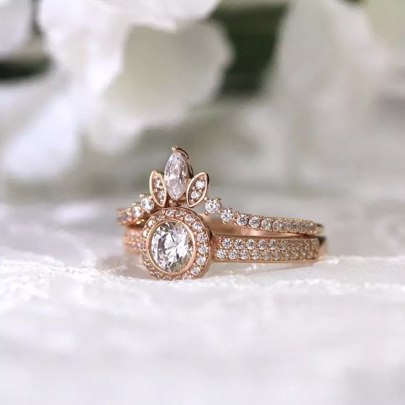 -Diamond cutting: Brilliant cut (center), Marquise cut (5x2.5mm) and Brilliant pave set (1.0mm)