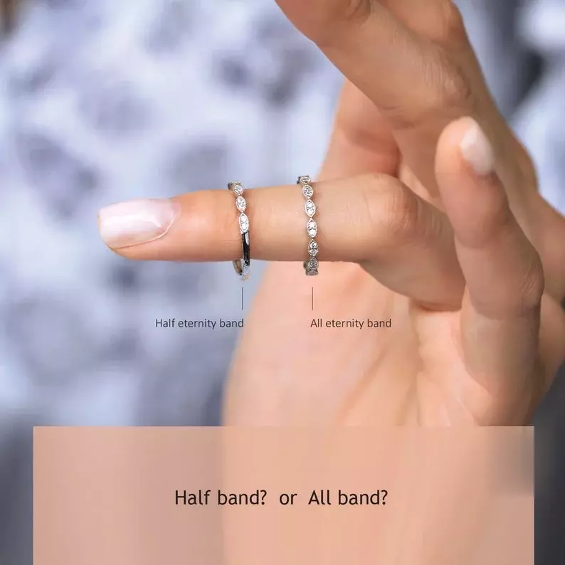 - Total stones weight: Approximately 4.75 cttw (w/ all eternity band) and 4.60 cttw (w/ half eternity band)