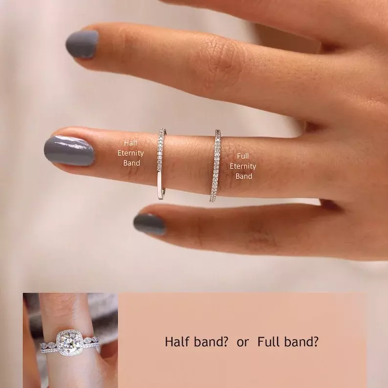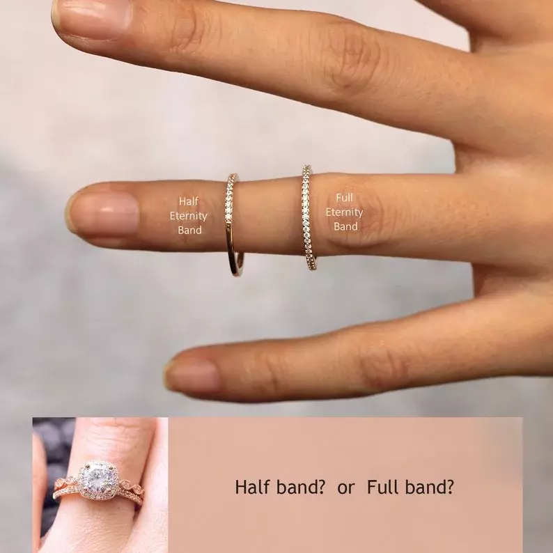 -Total stones weight: Approximately 1.80 cttw (w/ all eternity band) and 1.52 cttw (w/ half eternity band).