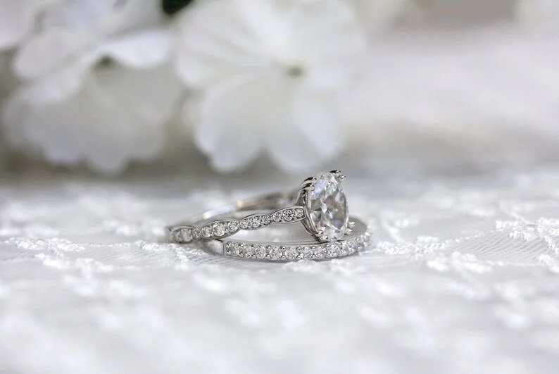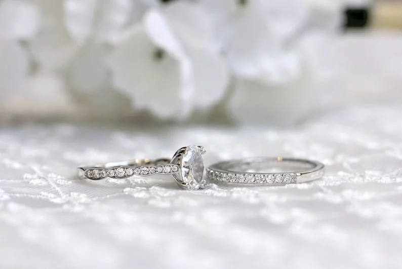 -Diamond cutting: Oval cut (center) & Brilliant cut pave set