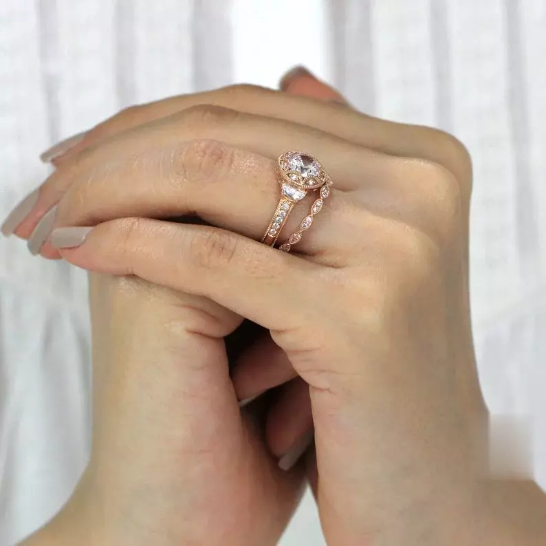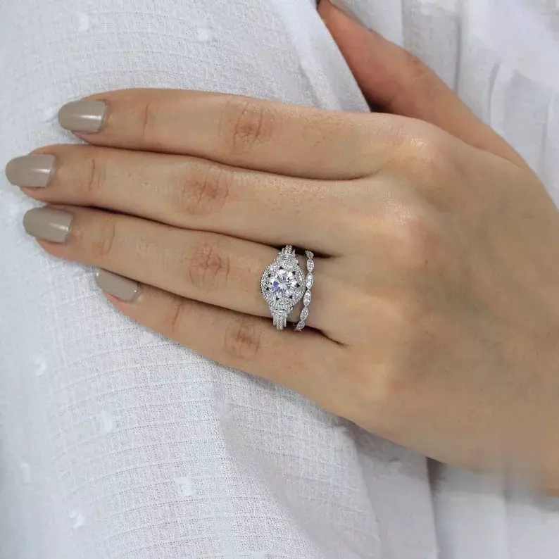 - Diamond cutting: Brilliant cut (center) & Brilliant pave set