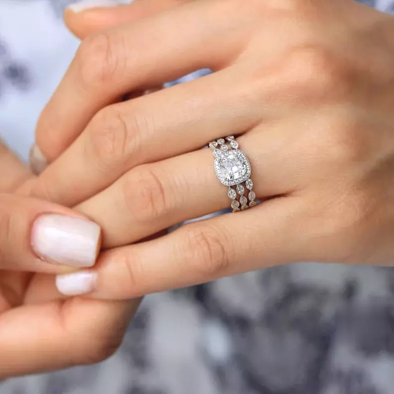 -Diamond cutting: Cushion cut (center) & micro pave set