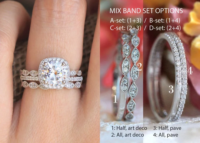 -Total stones weight: Approximately 2.49 cttw (A-set), 2.77 cttw (B-set), 2.64 cttw (C-set), 2.92 cttw (D-set),