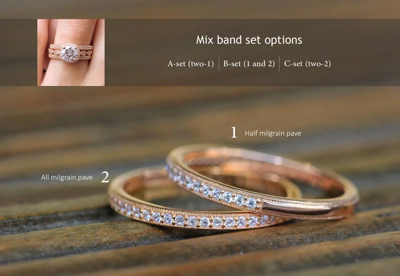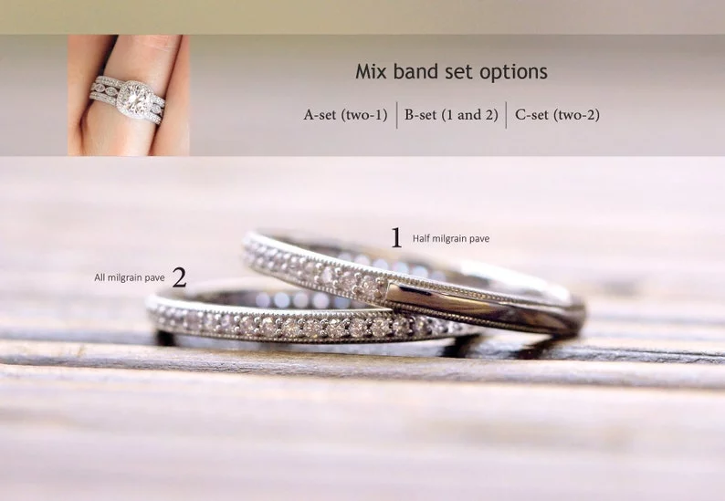 -Total stones weight: Approximately 2.25 cttw (w/ 2 all eternity bands), 1.75 cttw (w/ 2 half eternity bands) and 2.00 cttw (w/ mixed around bands)
