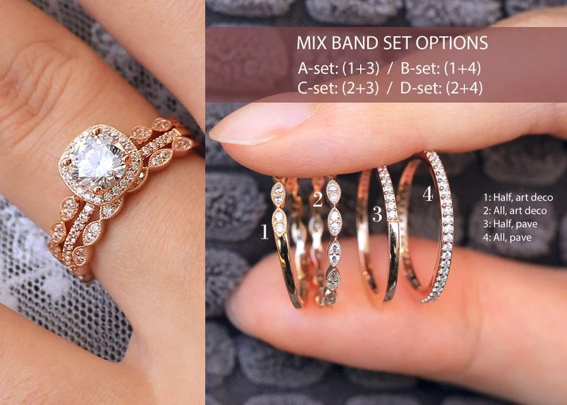 -Total stones weight: Approximately 1.79 cttw (A-set), 2.07 cttw (B-set), 1.94 cttw (C-set), 2.22 cttw (D-set)