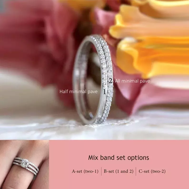 - Total stones weight: Approximately 2.14 cttw (w/ 2-all eternity bands), 1.58 cttw (w/ 2-half eternity bands), and 1.86 cttw (w/ mixed eternity bands)