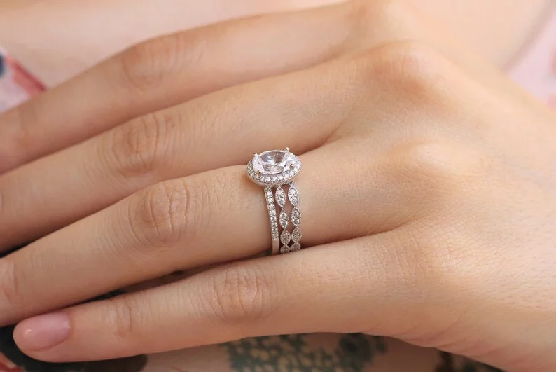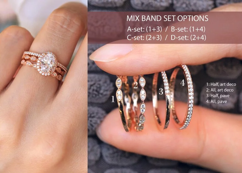 -Diamond cutting: Oval cut (center) & Brilliant pave set