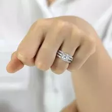 - Total stones weight: Approximately 4.50 cttw (w/ 2-all eternity band), 3.42 cttw (w/ 2-half eternity band) and 3.96 cttw (w/ mixed eternity band)
