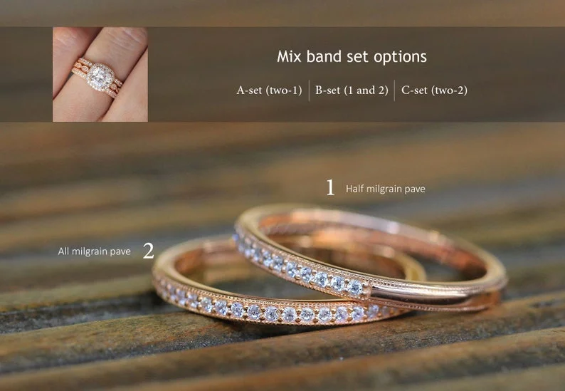 -Total stones weight: Approximately 3.08 cttw (w/ 2 all eternity bands), 2.58 cttw (w/ 2 half eternity bands) and 2.83 cttw (w/ mixed bands)