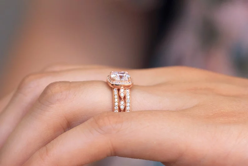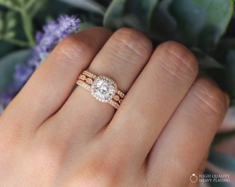 -Diamond cutting: Cushion cut (center) & brilliant cut pave set